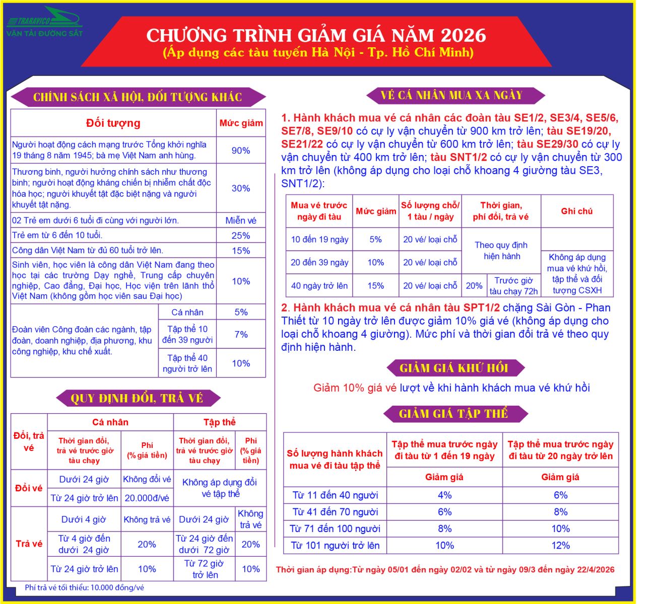 Áp dụng từ ngày 05/01 đến ngày 02/02 và từ ngày 09/3 đến 22/4/2026